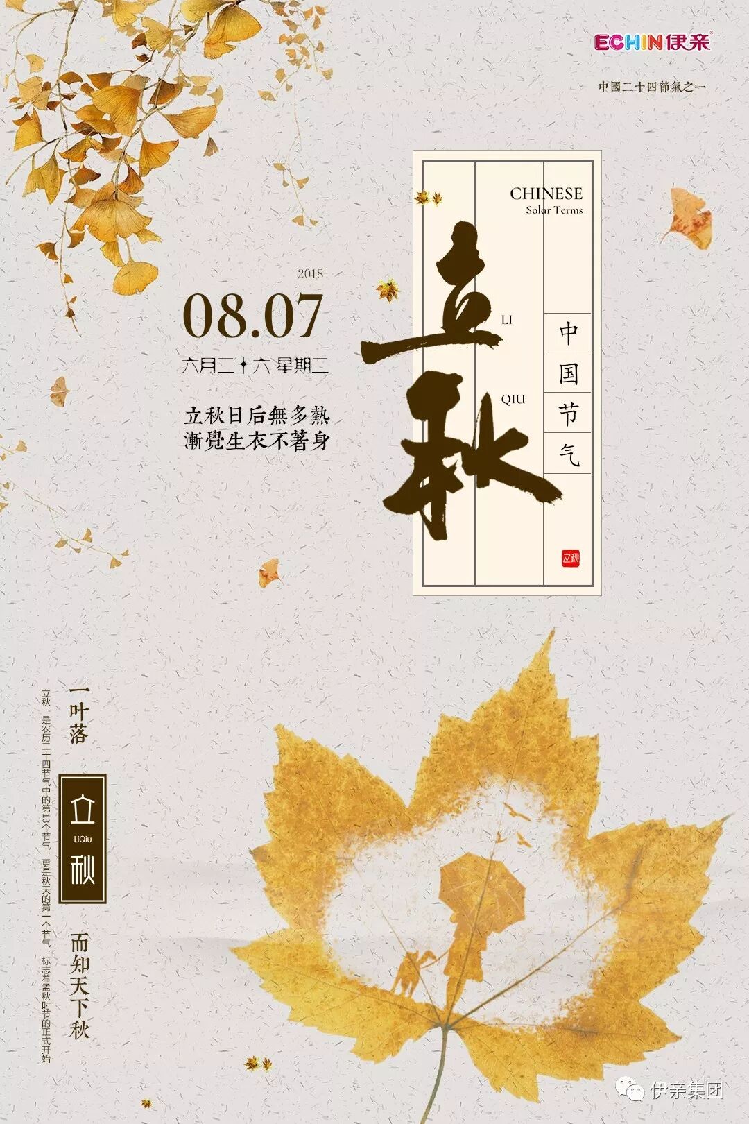是不是還沉浸在三伏天里難以自拔?不好意思...今天就要立秋了:秋天就這么來了,冬天還遠(yuǎn)嗎?是不是突然感受到來自伏天里的一絲涼意?秋”就是指暑去涼來。到了立秋,梧桐樹開始落葉,因此有“落葉知秋”的成語。